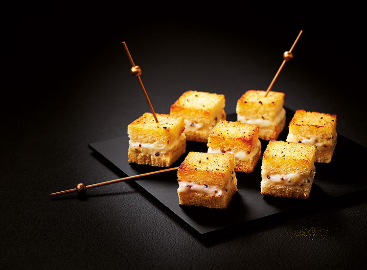 Eau, farine de blé (gluten (blé)), Comté AOP* (lait) 15,9%, beurre (lait), amidons (blé (gluten (blé)), maïs), lactosérum en poudre (lait), lait écrémé en poudre (lait), truffe blanche d'été (Tuber aestivum) 1,2%, lait entier en poudre (lait), levure de boulangerie, fleur de sel, huile d'olive vierge extra 0,4%, jus de cuisson de truffe blanche d'été (eau, sel), sel, gluten de blé (gluten (blé)), émulsifiants : mono- et diglycérides d'acides gras - stéaroyl-2-lactylate de sodium, épices (poivre blanc, poivre noir, piment du Mexique, baie rose, poivre vert), antioxydant : acide ascorbique, arôme naturel, farine de blé malté (gluten (blé))